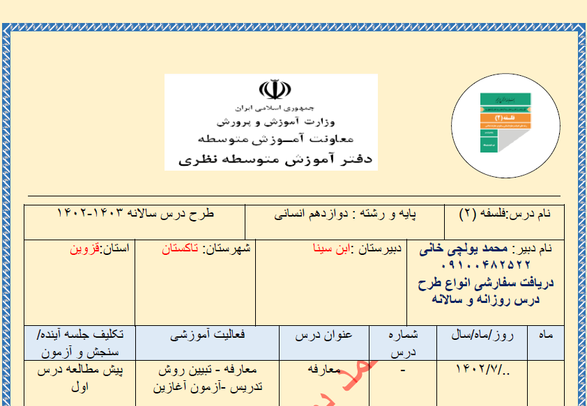 برچسبها: طرح درس سالانه منطق , سال تحصیلی , 1403 , 1402