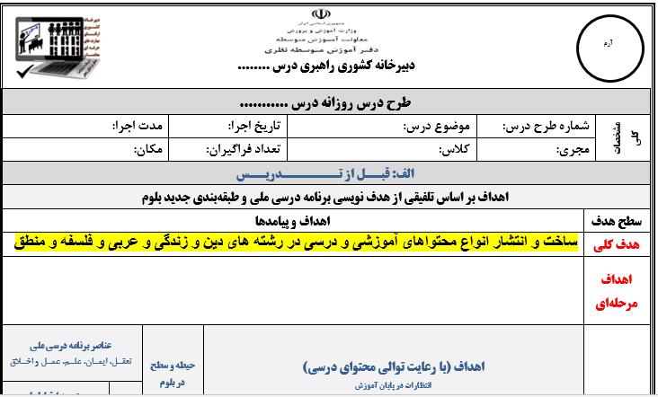 دانلود چندین مدل فرم خام طرح درس روزانه وسالانه